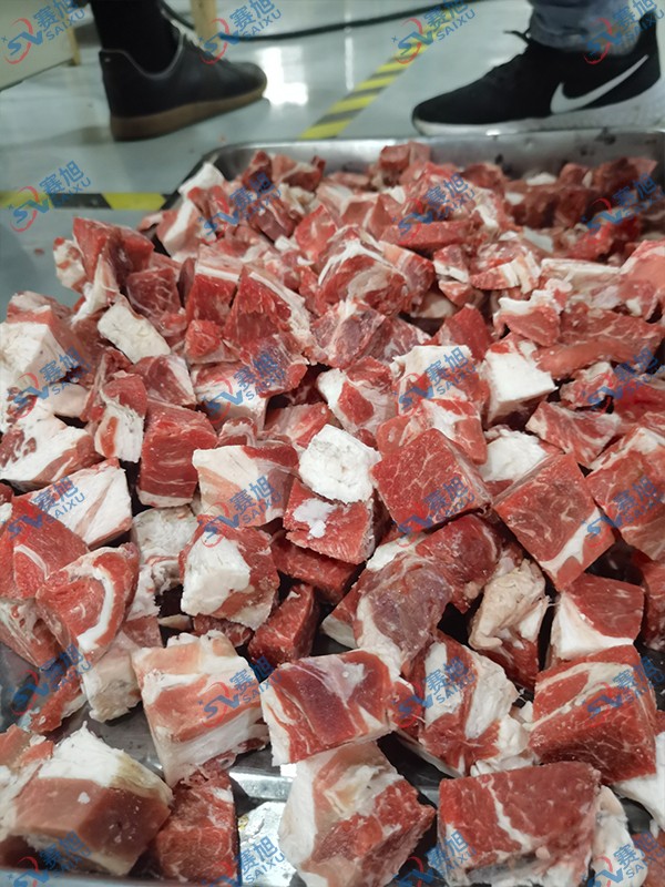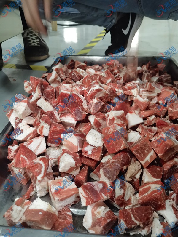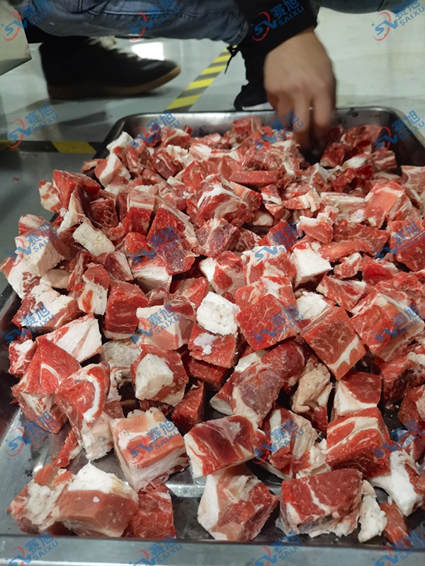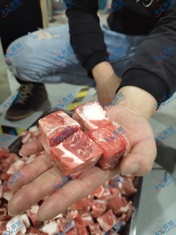 切带骨排骨,冻肉,腊肉都可以切块,切的大小均匀,高效省力。好用的切块机效果肉眼看得见: